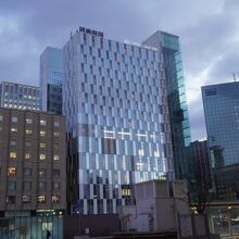 読売新聞北海道支社は、札幌駅の南口を出て、通りを挟んだはす向かい。モダンなデザインが特徴的なスタイリッシュなビルです。小さな看板が見えて、ホテルも入っているようですね。札幌駅のビルがなんといっても立派なので、これくらいでは目立たないと思いますが、よく見るとそれなりに頑張っていると思います。