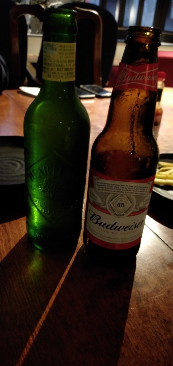 チェリビポテトXLを5人でシェアして、飲み物はバドワイザー瓶!スパイシーなポテトでススみます。二本目はハートランドにして、チョリソーとチキンタツタを追加。時間調整チョイ飲みに最適なチェリービーンズさんです。