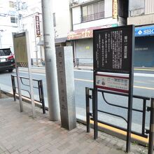 樋口一葉さんというと、本郷菊坂のイメージが強かったですが、明治26年に本郷菊坂町より下谷竜泉寺に移り住んで「たけくらべ」の題材をこの界隈を背景にして得たといわれているそうです。碑は歩道にあまり目立たず立てられていて、ここから東側に6mほどのところに旧居があったそうです。現在はその面影はたどれません。