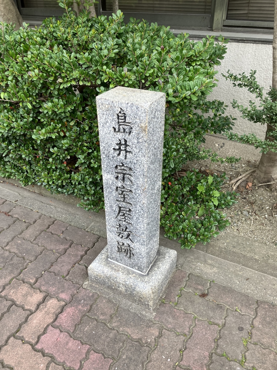 福岡市営地下鉄箱崎線「呉服町駅」から徒歩で3分ほどです。島井宗室は神屋宗湛、大賀宗九と並ぶ博多三大豪商の一人、博多を拠点に日朝貿易などで巨万の財を築いた人物です。また茶人千利休とも懇意になり数寄者でもありました。京都大徳寺に出家し「宗室」とし「武士とキリシタンには絶対なるな」などの遺訓が有名です。この周辺には屋敷があったとされますが石碑が一本立っているだけで説明板もありませんでした。櫛田神社境内に屋敷跡にあったという土塀「博多べい」が移築されたとのこと。