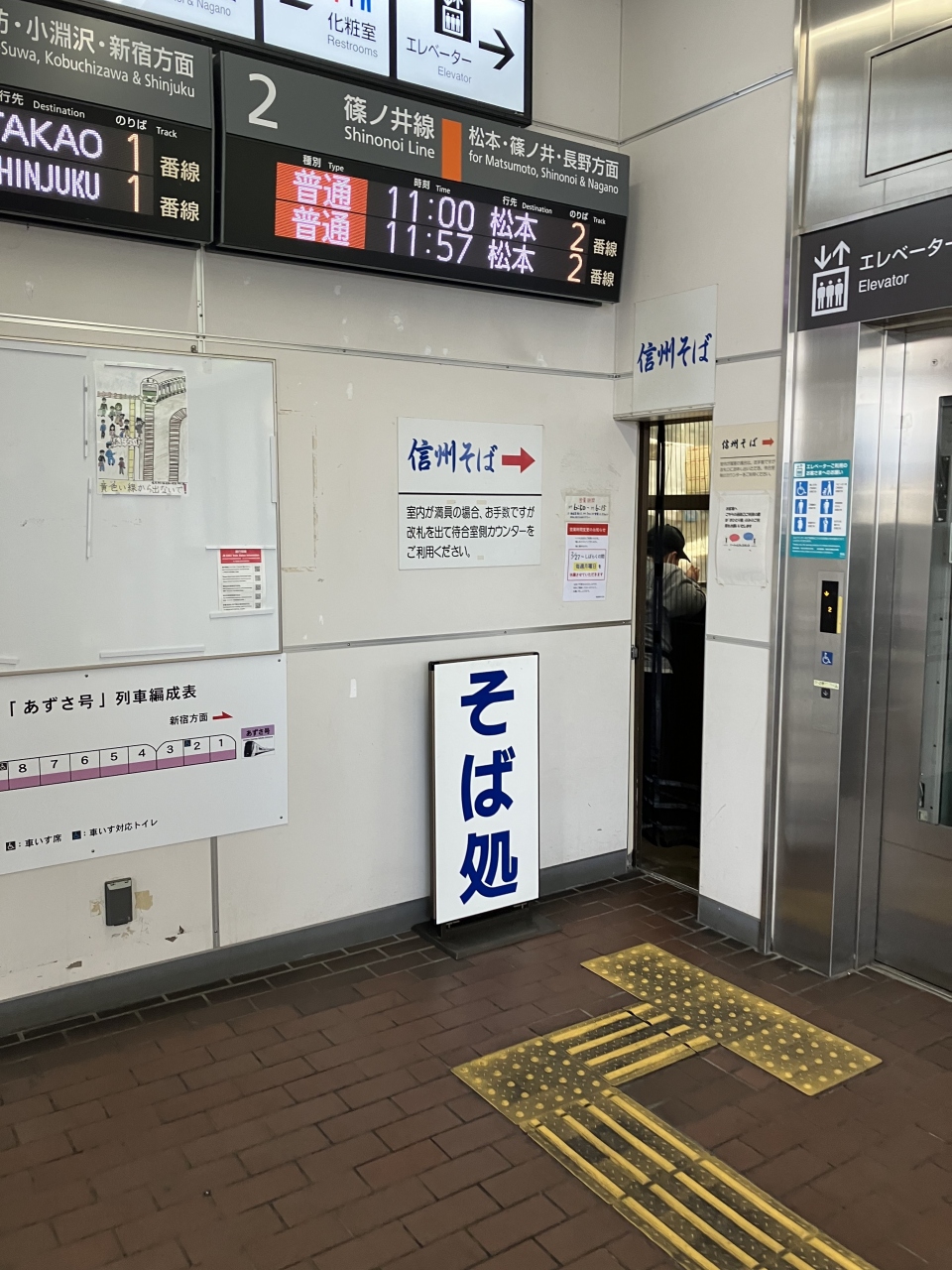 日本一狭い立ち食いそば塩尻駅構内の桔梗