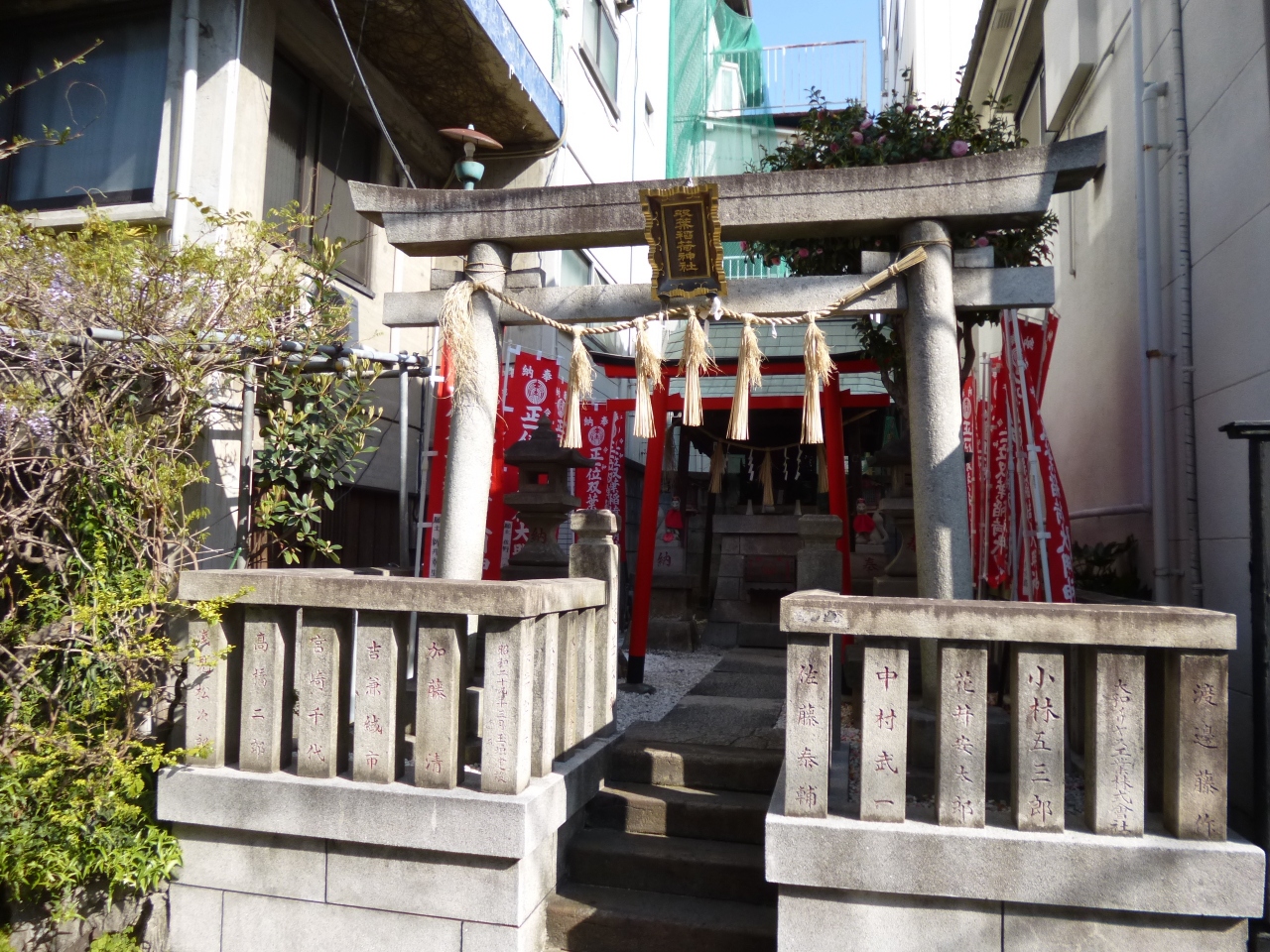 都営大江戸線・両国駅を降りて裏通りを東へ150メートルほど進んだところにあります。左右を建物に挟まれていますが、道路に面して石造りのしっかりした柵があり、石灯籠などはかなり歴史を感じるものでることから、建物よりかなり前からこの場所にあったことが伺えます。近隣の方々の厚い信仰を集めていることが感じられるお稲荷さんでした。