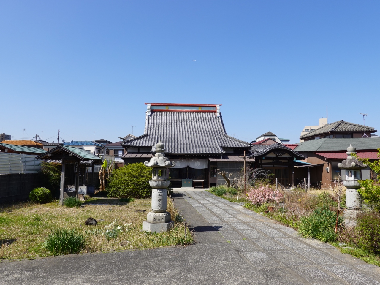 北総線新柴又駅のすぐ北にある真言宗智山派寺院です。大黒天を本尊としており、柴又七福神の一つです。驚いたのは、駅から徒歩1~2分という場所でありながら、境内がとても広く、まるで地方の田園地帯にあるお寺のようなことです。境内には石碑や仏塔の姿もあり、歴史あるお寺だと感じました。
