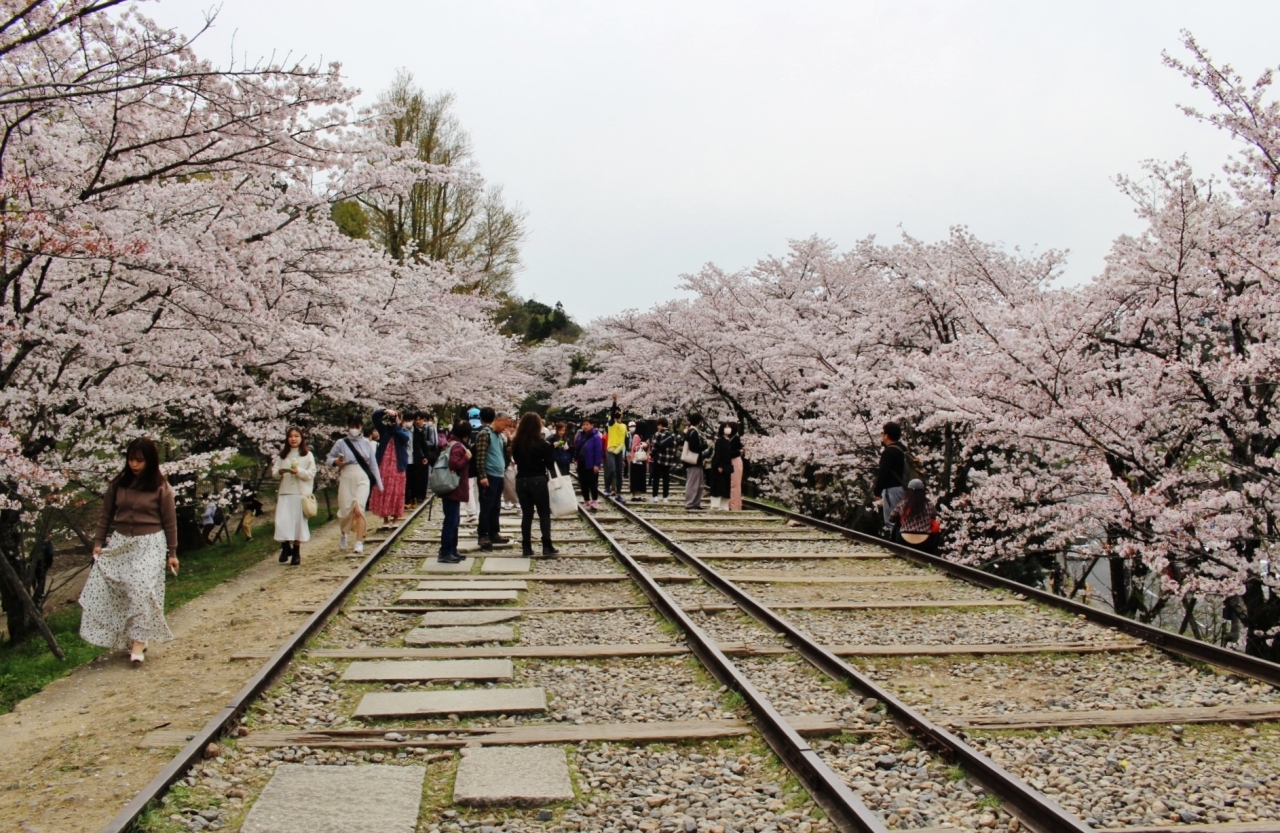 台車が往復した鉄路の両側は桜並木となっており、桜の開花期には京都の花見スポットの一つとして、大勢の人が訪れる。