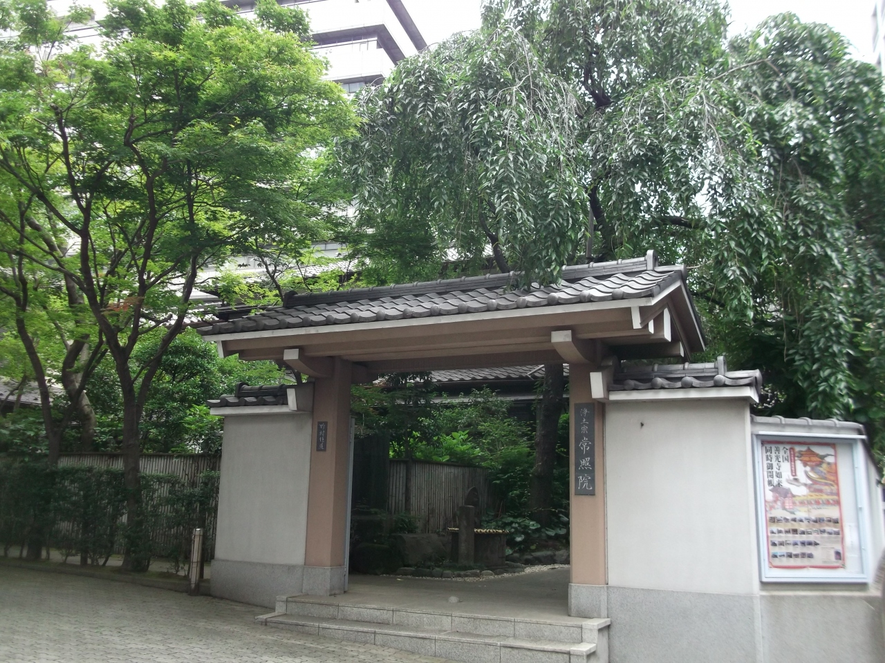 地下鉄大門駅から増上寺に向かう途中にある、浄土宗の寺院です。新しさを感じる山門を抜けると参道の両側に古井戸、石碑が並び、その先に一見民家風の本堂がありました。街中にありながら敷地内は緑に囲まれていて、落ち着いた雰囲気があります。江戸時代享保年間に起きた白子屋事件に関係した、白子屋お熊の供養碑もありました。