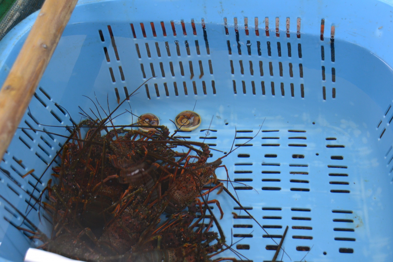 生簀には活きた魚貝がたくさんいました。