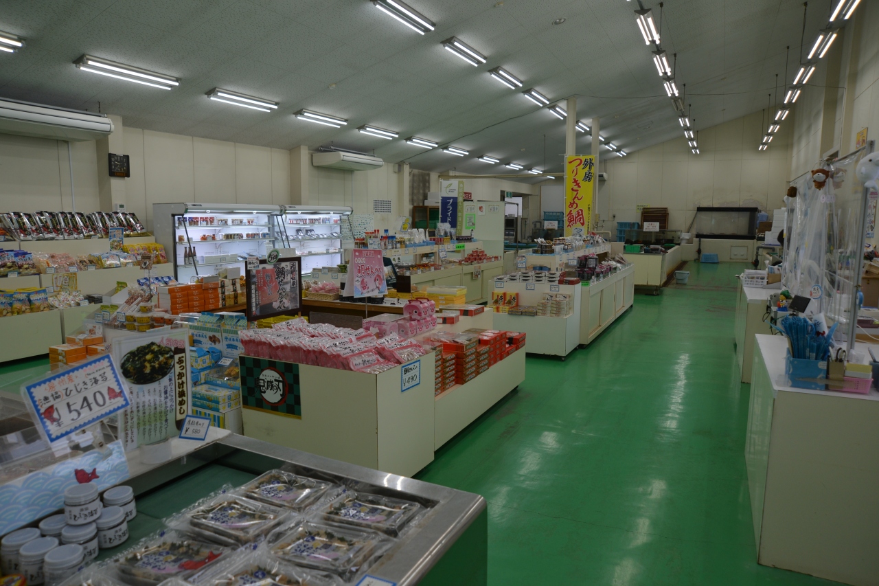「活き活き小湊ウオポート」は、小湊漁業協同組合が運営しているそうです。店内には水槽がたくさんあり、活きた魚、伊勢海老、貝類などがならんでいます。持って帰ることもできるようです。店内にはお土産がたくさん販売されていました。