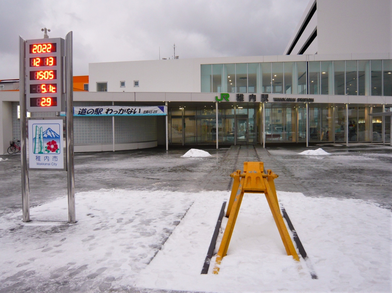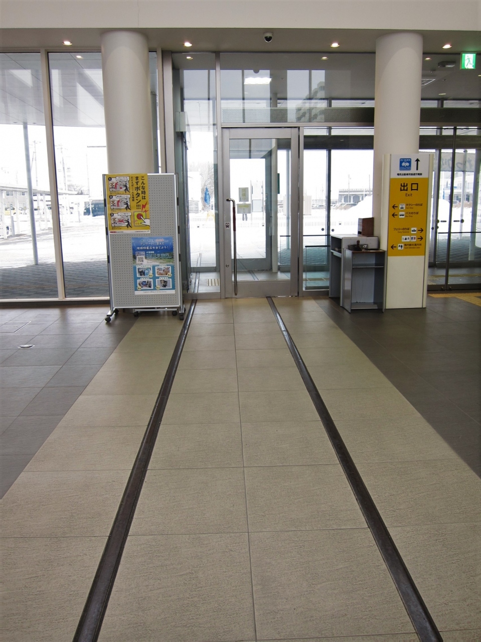 がその足元を見れば2本のレールがそのまま外へ延びていることが判ります…。そして、そのレールを辿ればその先に平成24年にキタカラが全面開業した際に今在る駅前広場にモニュメントが復元されたのが日本最北端の線路のモニュメントに成ります。