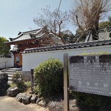 甘樫丘の北西200mほどの住宅街にあり、現在の向原寺前に“豊浦寺跡”の石柱と由緒板が建てられています。それによると始まりは552年。なんと日本最古の寺とのこと。にしてはまったく知られていませんが…。後に仏教信仰が流行り病のせいされ焼かれてしまったようです。その後紆余曲折があり、現在この地に寺が残されています。