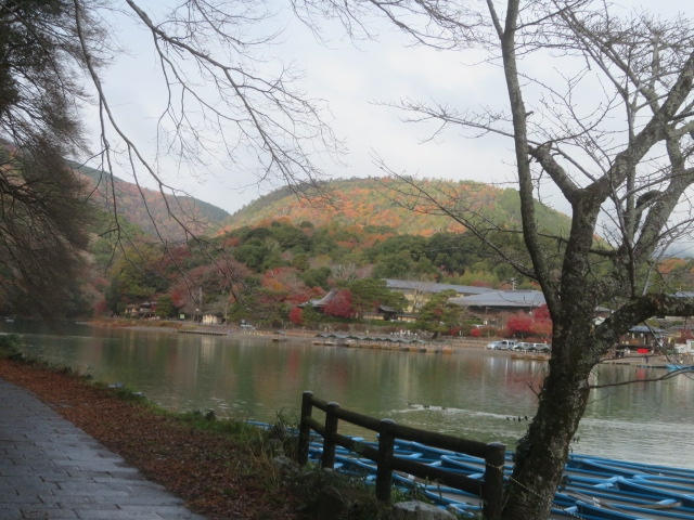 今回人が多いのは覚悟で、嵐山の紅葉を見に行きました。モンキーパークの下あたりから、対岸に見える山の紅葉と桂川の景色は素晴らしかったです。ここは、ほとんど人もいなくて、静かに紅葉を楽しめました。渡月橋も遠くから眺めるのがいいですね。