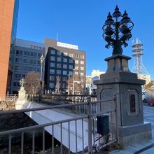 松本城を目指して本町通りを進むとこの橋で女鳥羽川を渡りました。「ちとせばし」とはよくある名前の橋だよなと思ったら「せんさいばし」でとても珍しい名前でした。橋自体は現代的なもので特段惹かれませんでしたが親柱に乗っている複雑な街灯には目が釘付けになりましたね。