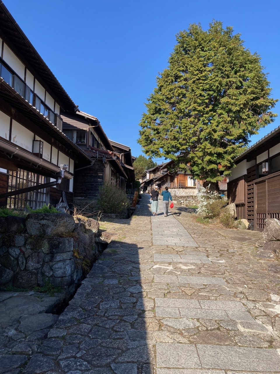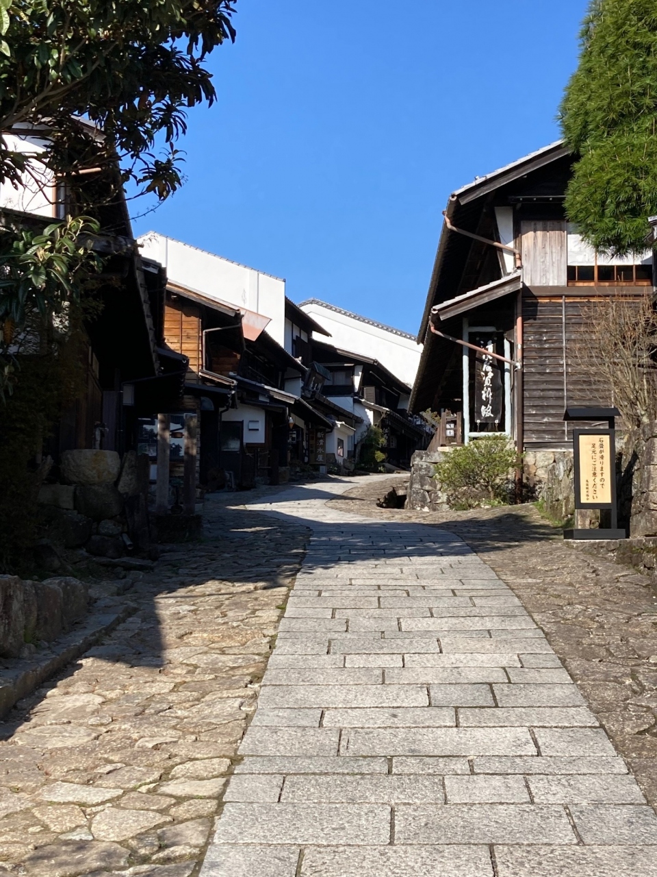 旧街道でも珍しい坂の宿場町。馬籠宿下から陣場上展望台まで旧中山道の自然遊歩道700mを約80m上りますが、町並みに変化があり飽きが来ないせいかきつくは感じません。途中のお土産屋では中津川名物栗きんとんのソフトクリームが売っていますが、この栗きんとんソフトクリーム、クリームと栗の甘さのバランスが絶秒でかなり美味しいです。展望台から見る恵那山も絶景で訪れる価値は十分あります。かなりお薦めです。