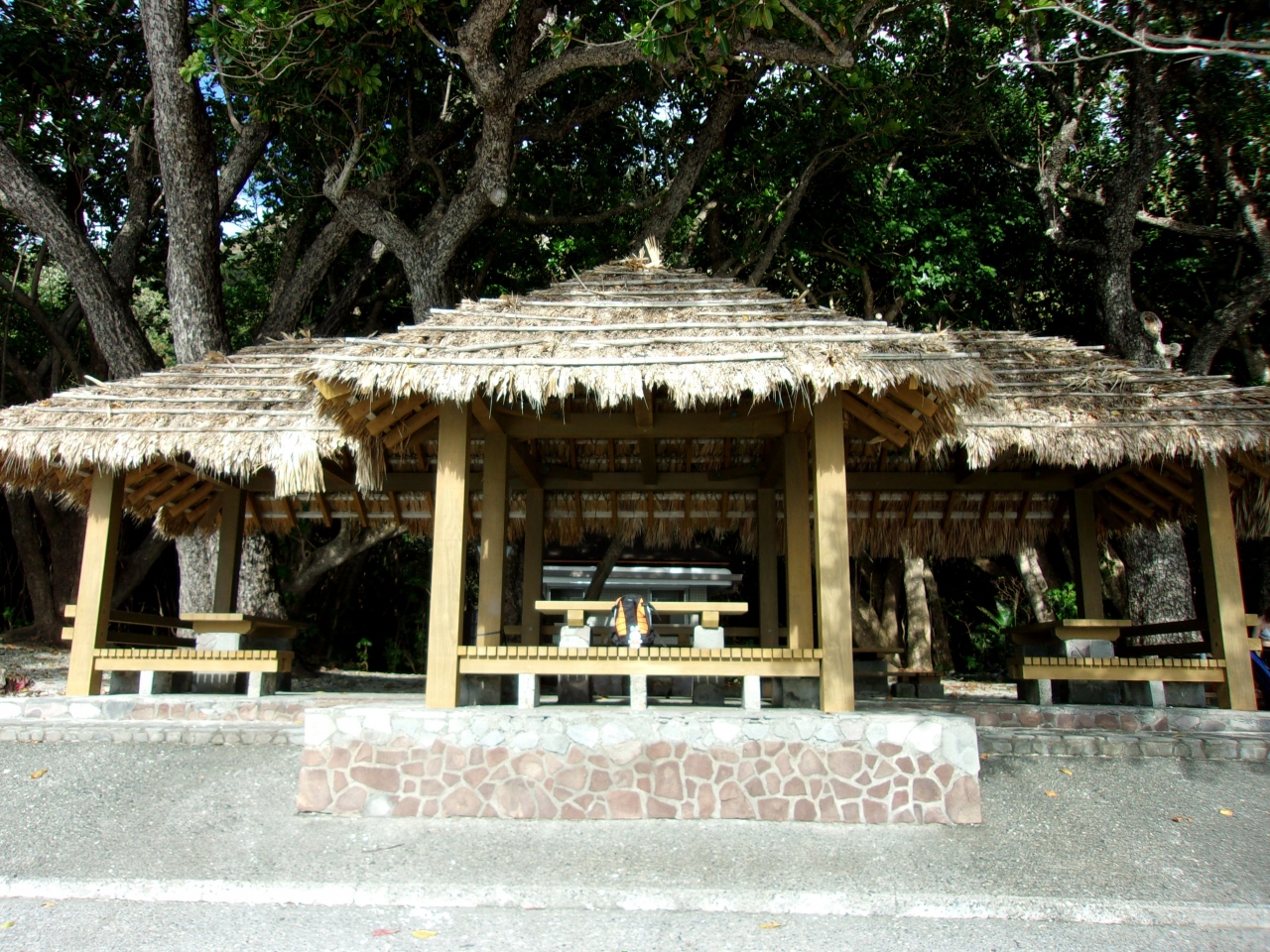 島で生えてる草で編んだ屋根で建てられた東屋。