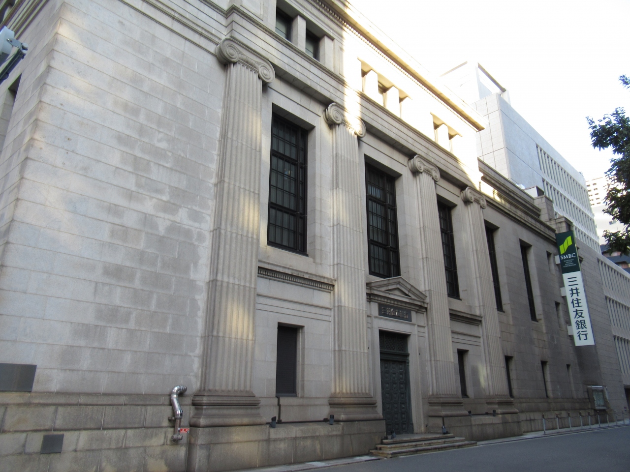 三井住友銀行大阪中央支店は、大阪の北浜に数多く残る近代建築の一つで、堺筋と高麗橋通りに面して建っています。