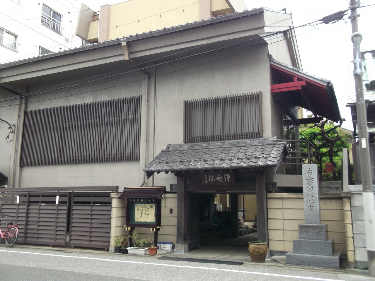 千代田線根津駅から歩いて12分ほど、谷中のヒマラヤ杉からほど近いところにある日蓮宗の寺院です。この寺のまわりには瑞輪寺の塔頭が並んでいて、浄延院もその一つです。お寺の外観は普通の民家のようですが、入口の山門とそこにかけられた「浄延院」の額でお寺だとわかりました。境内は広くはありませんが、落ち着いた雰囲気がありました。
