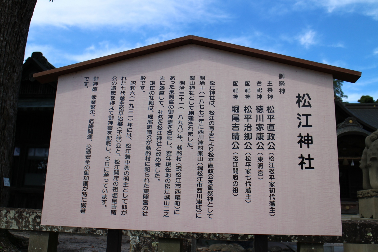 島根の旅の際に松江城を訪れた時に参拝に寄せていただきました