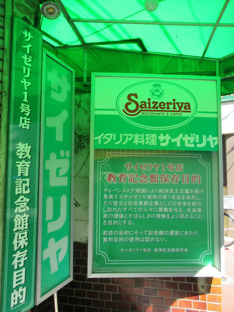 総武線・本八幡駅北口から2分ほど、八幡一番街商店会の中に建っています。日本全国で1000店舗ほどのイタリア料理の店を展開するサイゼリヤの1号店があったところです。現在、店の営業はしていませんが、店の理念を忘れないために保存しているとのことです。観光施設ではありませんが、サイゼリヤ発祥の地として、その思いと理念を知ることができます。