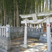 竹林の中に小さな社殿が建っています