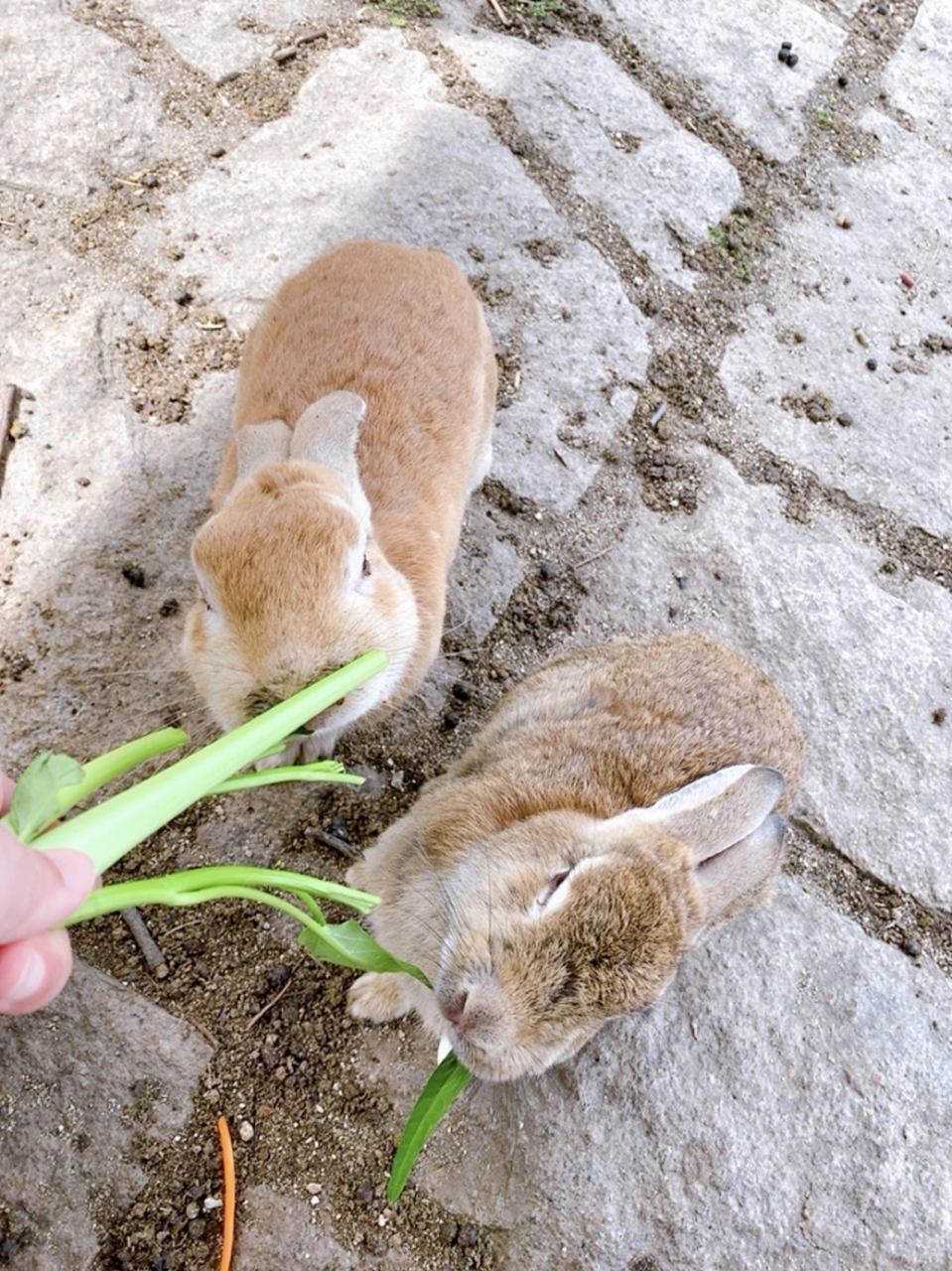 ウサギの数は激減してたけれど、食欲旺盛の子はかわいく膝に乗ってきたり、野菜が入ってるエコバッグの中に入ろうとしたり…とめっちゃ可愛かったです。