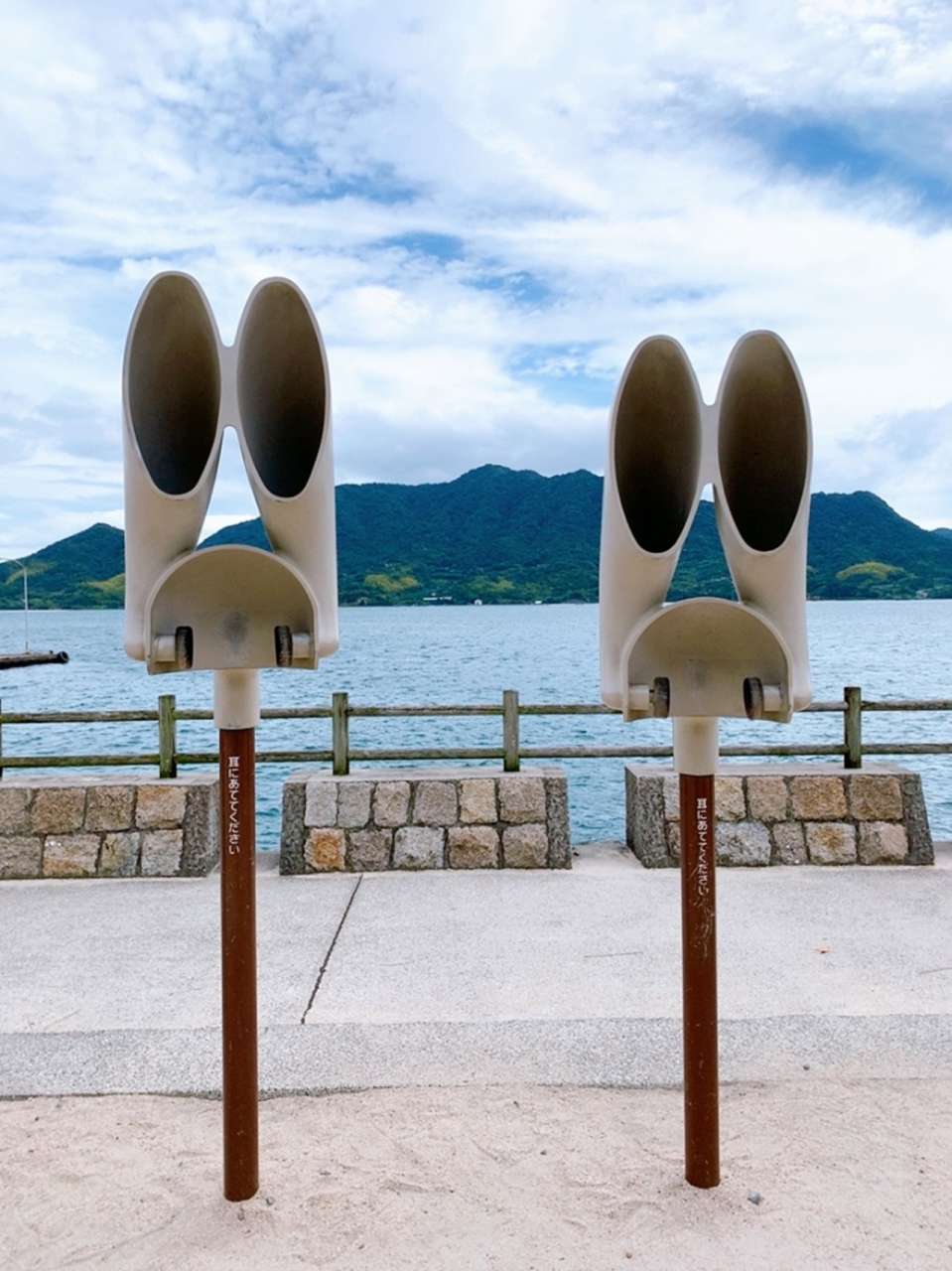 野生のウサギさんたちに会いに、念願の大久野島へ…。