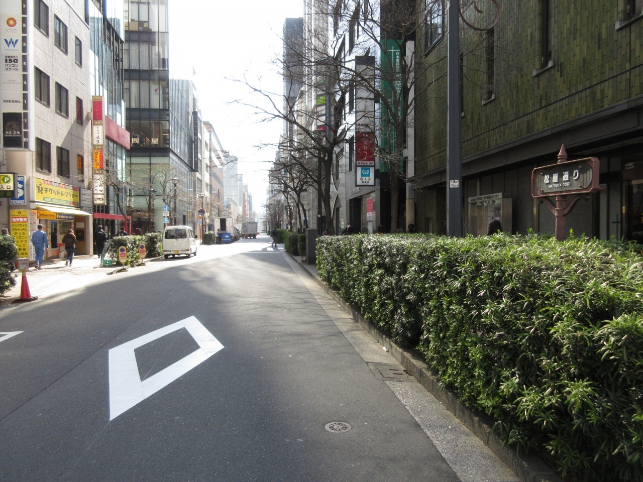 銀座の ど真ん中を貫く道なんですが、大通りからはちょっと内側に入っているので、通行量も少なく、喧騒もあまり感じません。