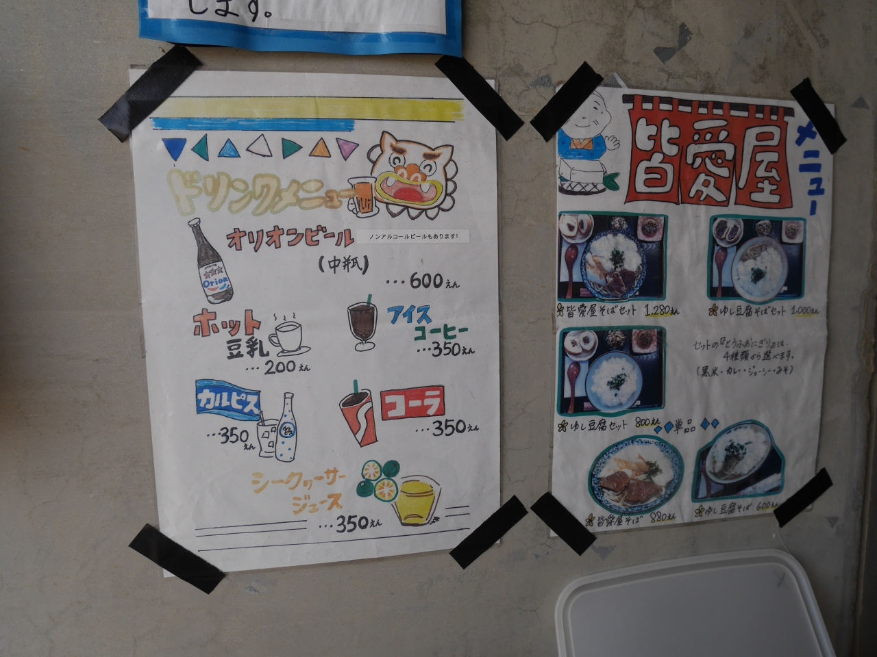 ゆし豆腐そばのセットと、単品の皆愛屋そばにしました。