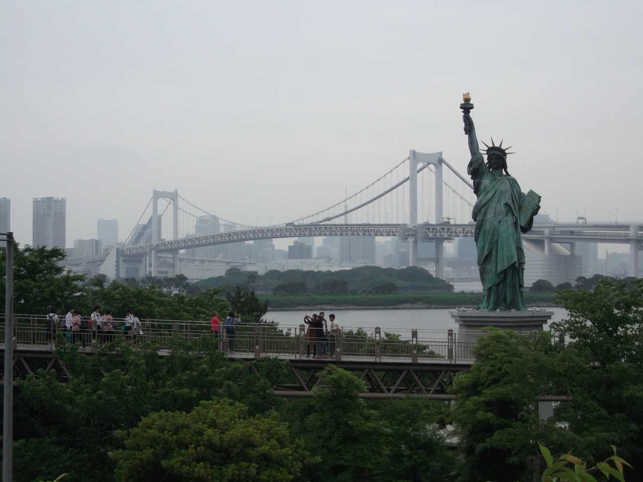 お台場海浜公園の海沿いに整備された木製の散策路です。自由の女神像やレインボーブリッジ、都心の遠景などを眺めながら散策を楽しめます。途中には展望デッキもあり、少し高い目線からベイエリアの景観を眺めることができます。