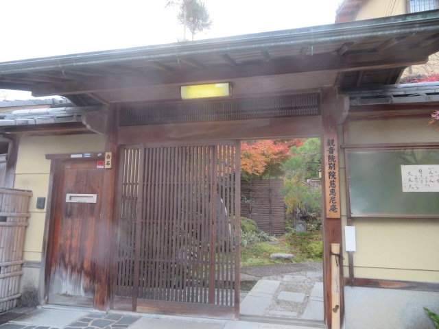 こちらのお寺は、寺社町ともいえるお寺の集中したエリアにあります。ただ、外観はログハウス風で、ちょっと情緒に欠ける外観です。すぐそばに、観音院別院慈恵尼庵の格子戸の入り口がありました。しかし、こちらの建物も民家のようでした。