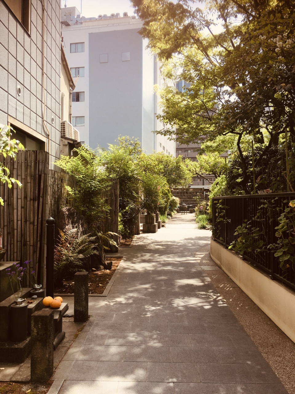 門の直ぐ横は幼稚園の出入り口でした。境内入り細い道を進むと年季があるお地蔵さんがあり赤い前掛けと赤い帽子を被っていました。横には稲荷大明神があり、その後方には墓地が広がっていました。本堂を見学するのをを忘れましたが建物が奥にありました。