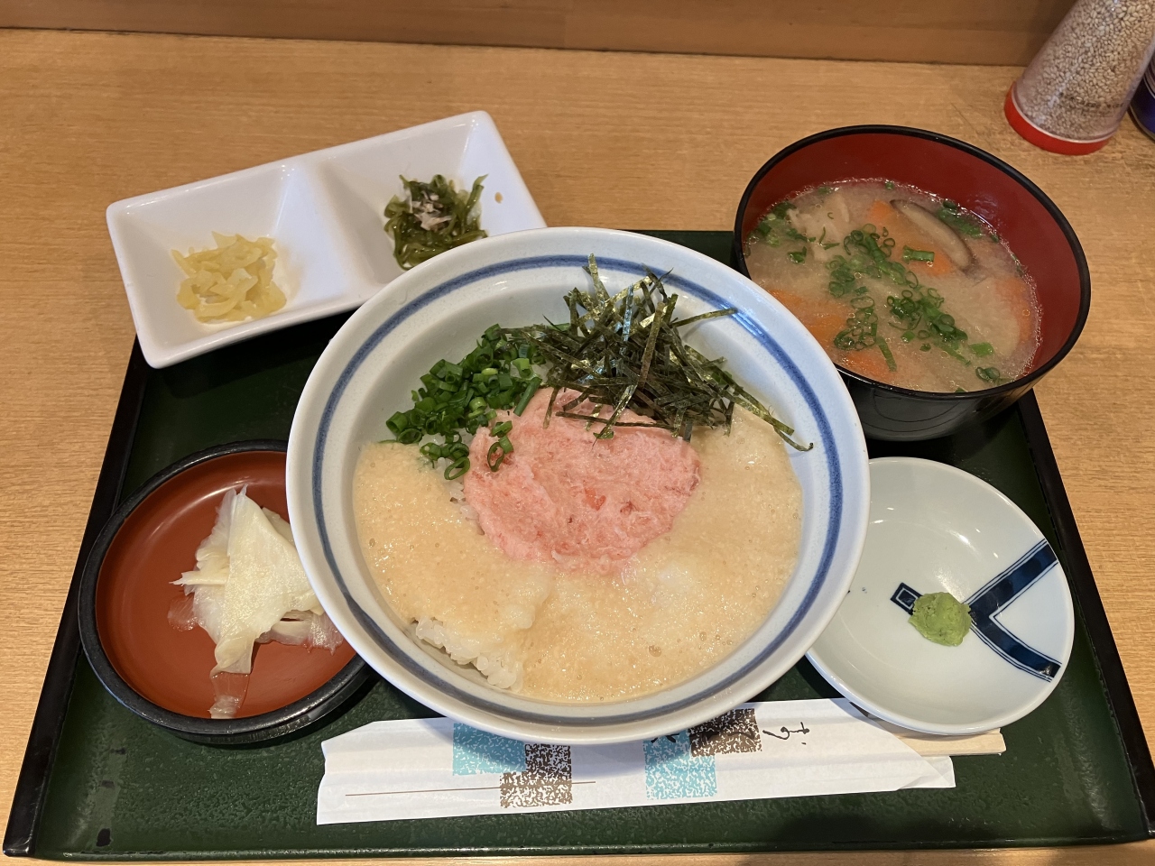 思い出横丁大通りてらだ屋朝定食ネギトロ山かけ飯510円