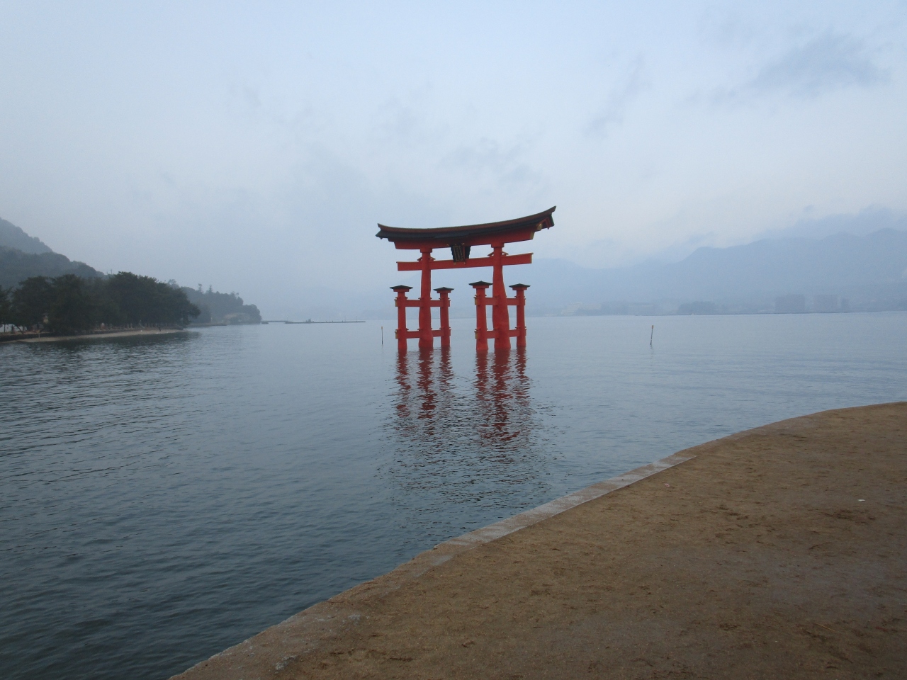 御笠浜は、厳島神社の大鳥居が眺められる海岸エリアで、厳島神社への参道にもなっており、大鳥居の定番の撮影ポイントでもあります。