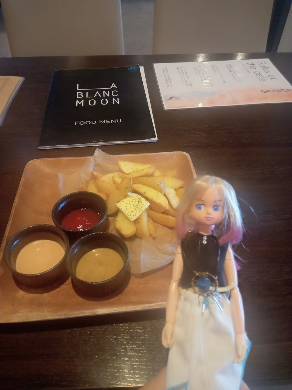 今回はスムージーとMrs.ポテトクイーンを注文。数種類のソースとともに、熱々のポテトを堪能しました。ケチャップやマスタードなど。スムージーについては、甘さ控えめで暑い日に最適な印象でした。