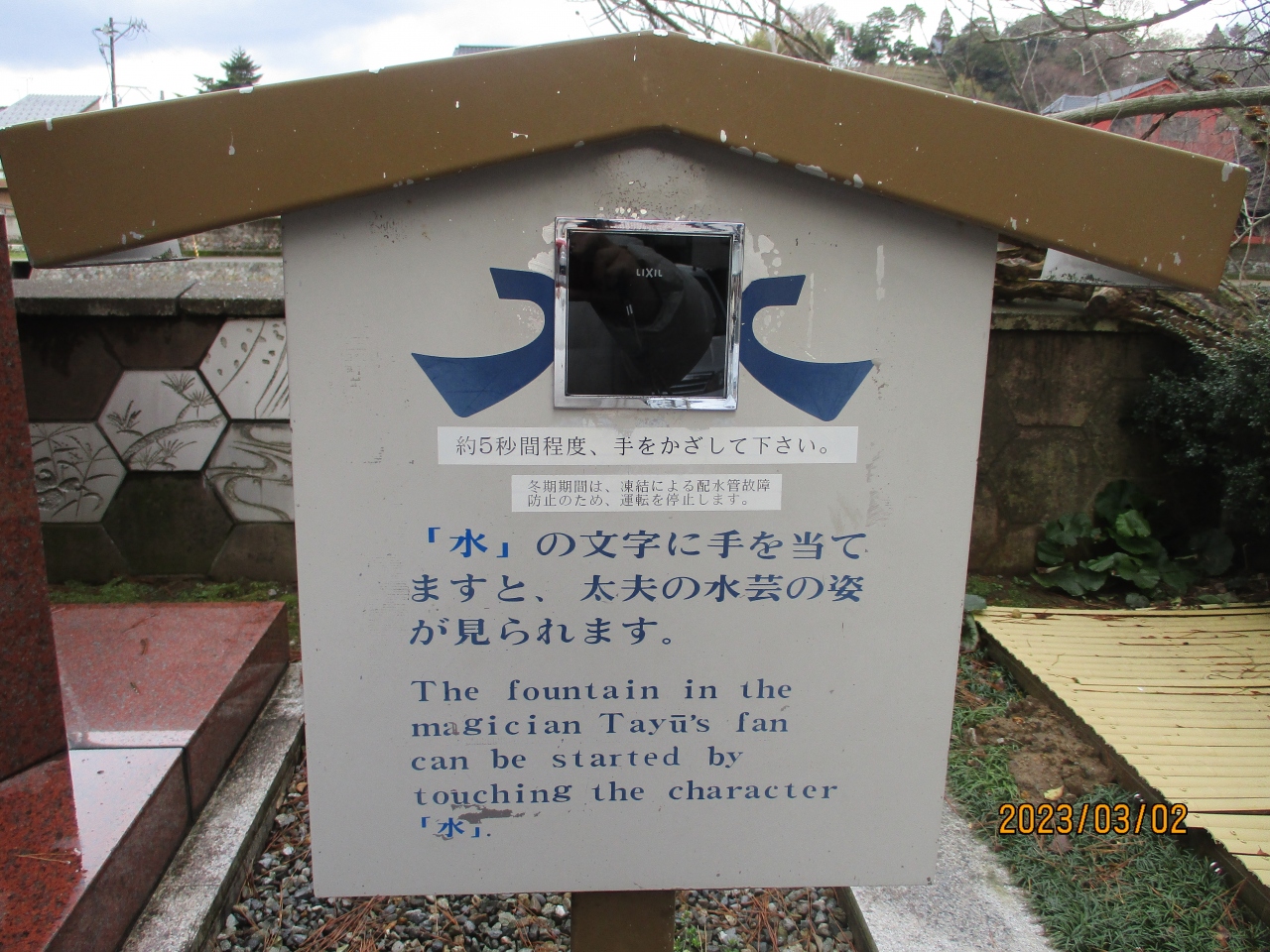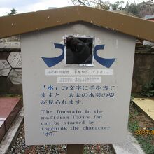 銅像の前にしかけがある箱がありました。箱のセンサーに手をかざすと水芸をします。凝っていると思いました。