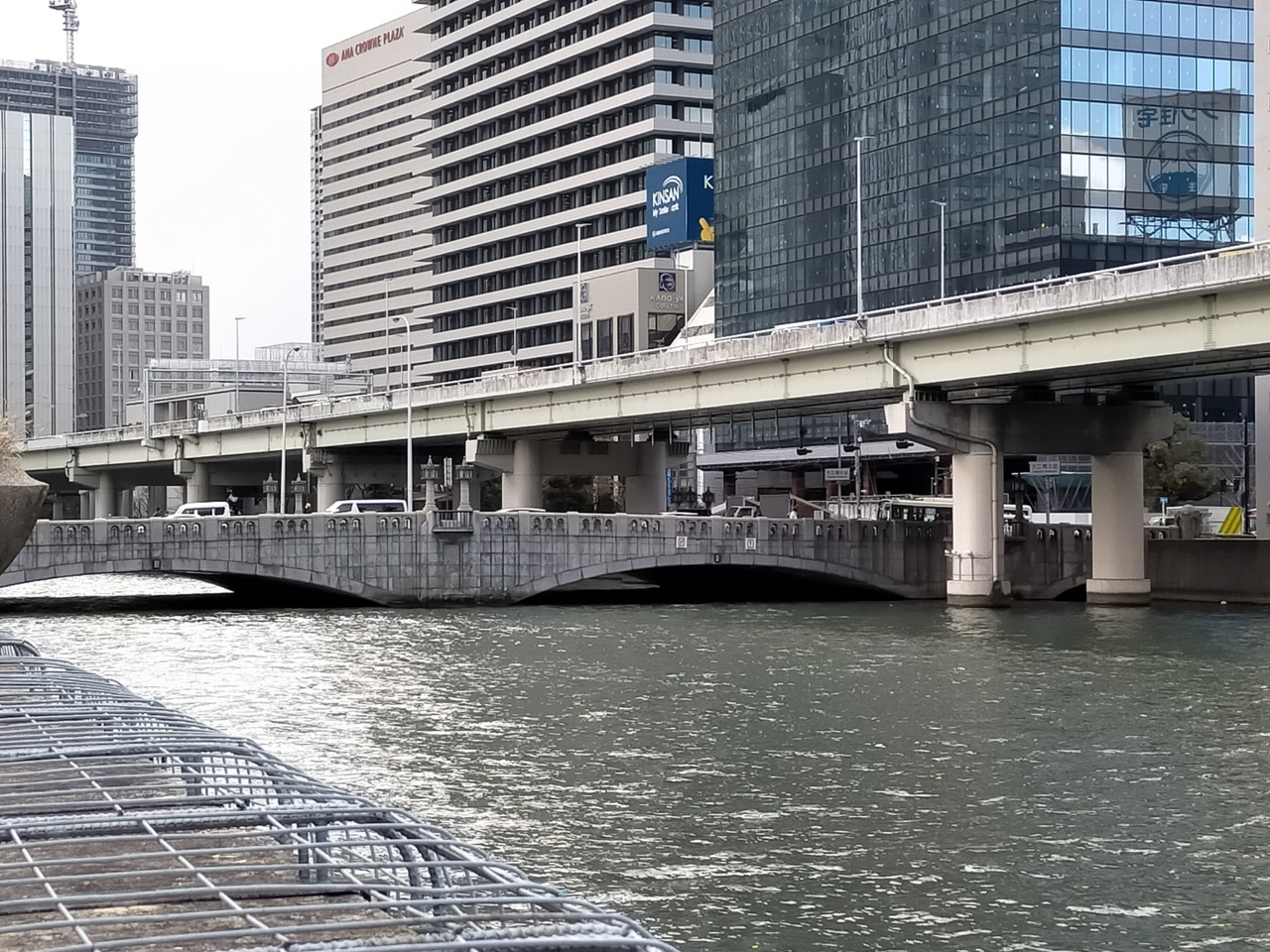 大江橋は、大阪中之島の堂島川に架かる橋で、国の重要文化財に指定されています。御堂筋(国道25号)の橋です。江戸時代の元禄年間に堂島の開発に伴って架けられた橋の一つです。現在の橋は、昭和10年に架けられた鉄筋コンクリート造りのアーチ橋です。淀屋橋へ行くときに渡ました。