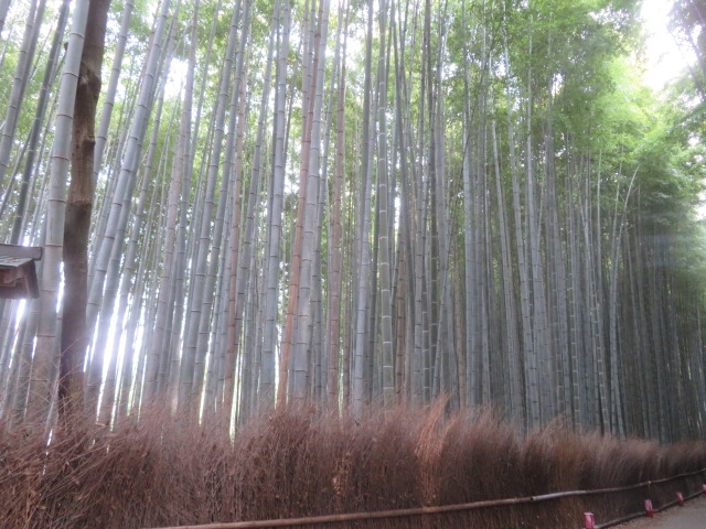 京都には、長岡京市など結構竹林はあります。しかし何といっても嵐山の竹林が1番です。すごいなと思うのは、手入れされているのかもしれませんが、見事に竹の背丈が揃っています。いわゆる見事な竹並です。この竹の間を歩くのは森林浴ですね。