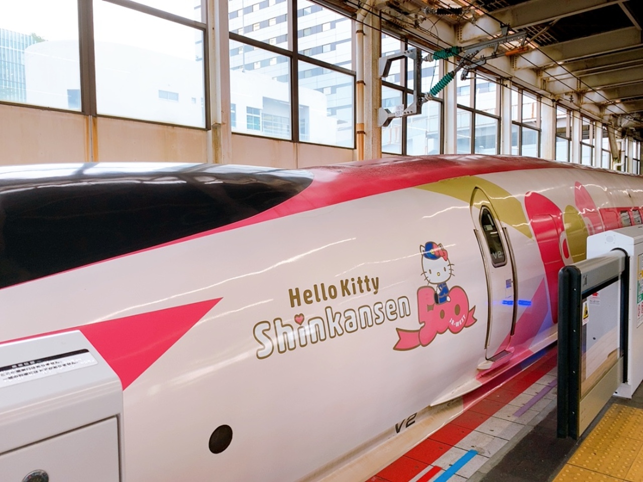 500系の山陽新幹線の一編成をまるごとHello Kitty仕様にして運行しています。