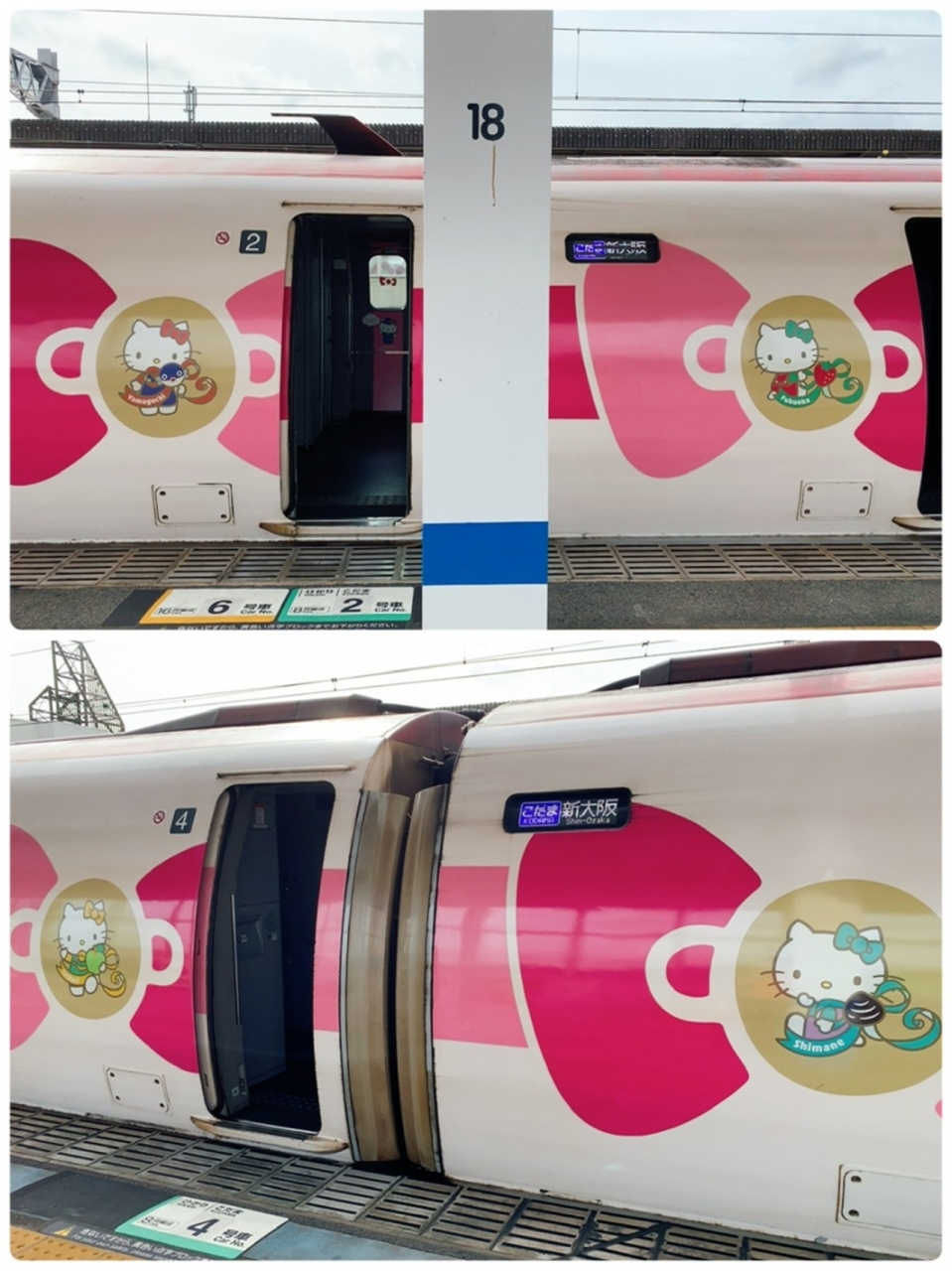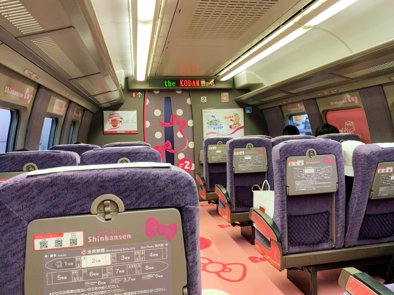 ちなみに、3号車より後ろの車両は、内部は通常の新幹線と同じです(扉くらいはキティちゃんだったかな…)。 なので、純粋に移動するためにこの新幹線乗った場合は、3号車目以降に乗れば空いてます。