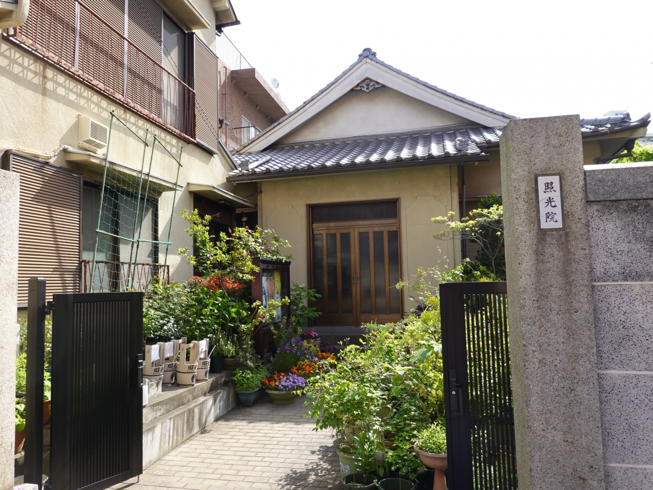 木場公園にある東京現代美術館から歩いて6分ほど、三好三丁目交差点近く、深川七福神の毘沙門天も祀られていている龍光院の隣にあるお寺です。気を付けていないとお寺とは気が付かない外見です。入り口は植木鉢やプランターで緑が多く、その奥に行くと墓地があります。浄土宗のお寺で雲光院の塔頭だったといわれいます。