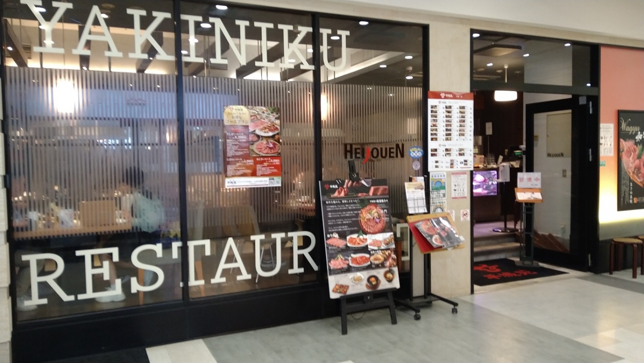 お台場の大型商業施設・アクアシティお台場1階にある焼き肉レストランです。夕食でカルビラーメン1078円をいただきました。具はカルビ、ゆで卵半分、モヤシ、ネギで、コシのある縮れ中華麺と、やや甘いスープの一品です。カルビの量は少なめでしたが、柔らかくて美味しかったです。