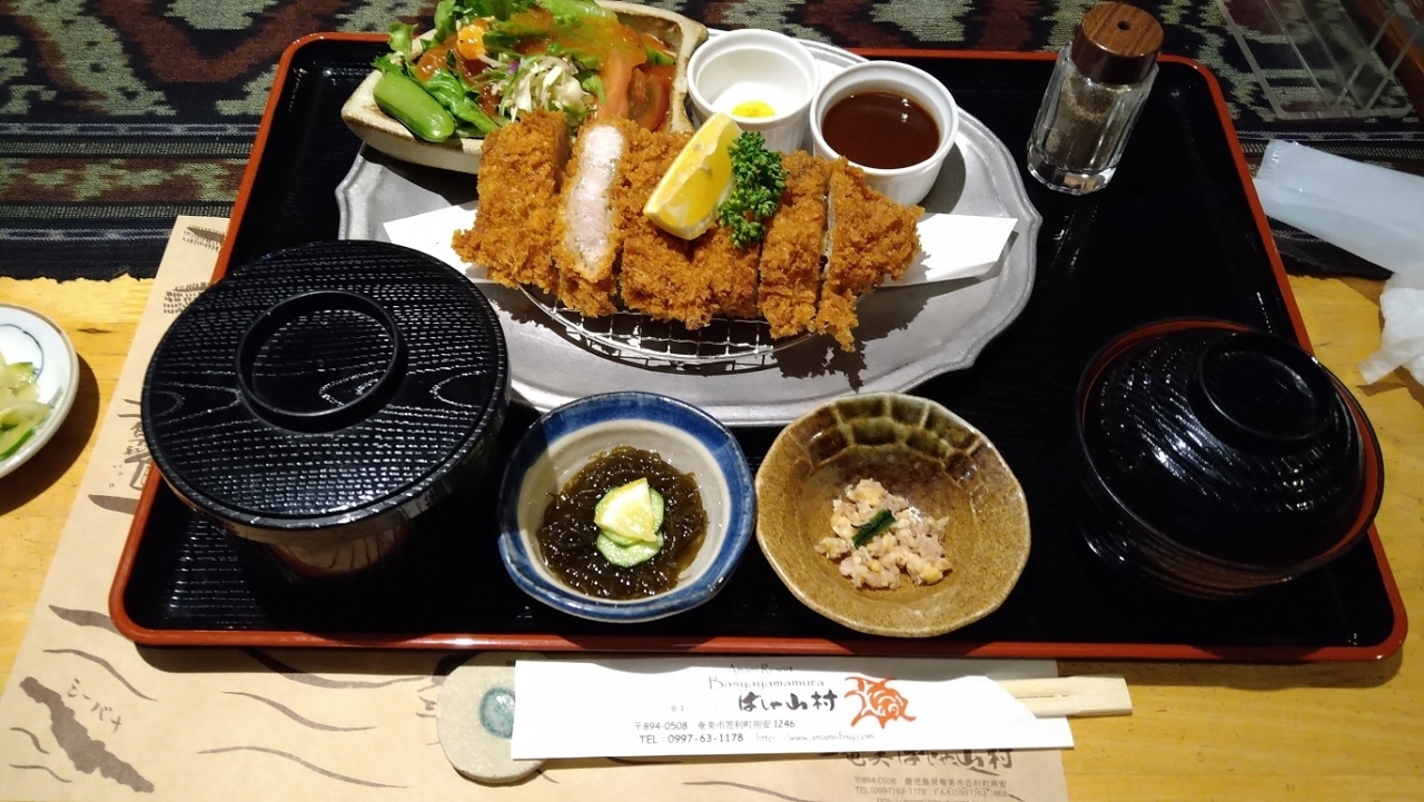 奄美大島の奄美市笠利町の海岸沿いにある郷土料理のレストランです。2023年4月の奄美大島観光時の夕食で利用し、黒豚トンカツ定食をいただきました。かなり厚めのとんかつでしたが、お肉は柔らかくて、脂身も多め。店内の雰囲気も良く、満足の夕食となりました。