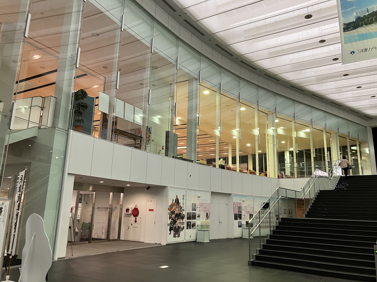 名鉄線「東岡崎駅」から徒歩で10分ほどです。岡崎公園の北側にあります。新しくとても綺麗です。図書館の他、ホール、内田ジャズコレクションなどもある複合文化施設です。建物のデザインも素敵で公立の施設として羨ましい限りです。3階建の低層建築は「ビスタライン」を意識してとのこと。岡崎公園とともに訪れたいスポットです。9:00~21:00。たしかローソンもあったように記憶しています。