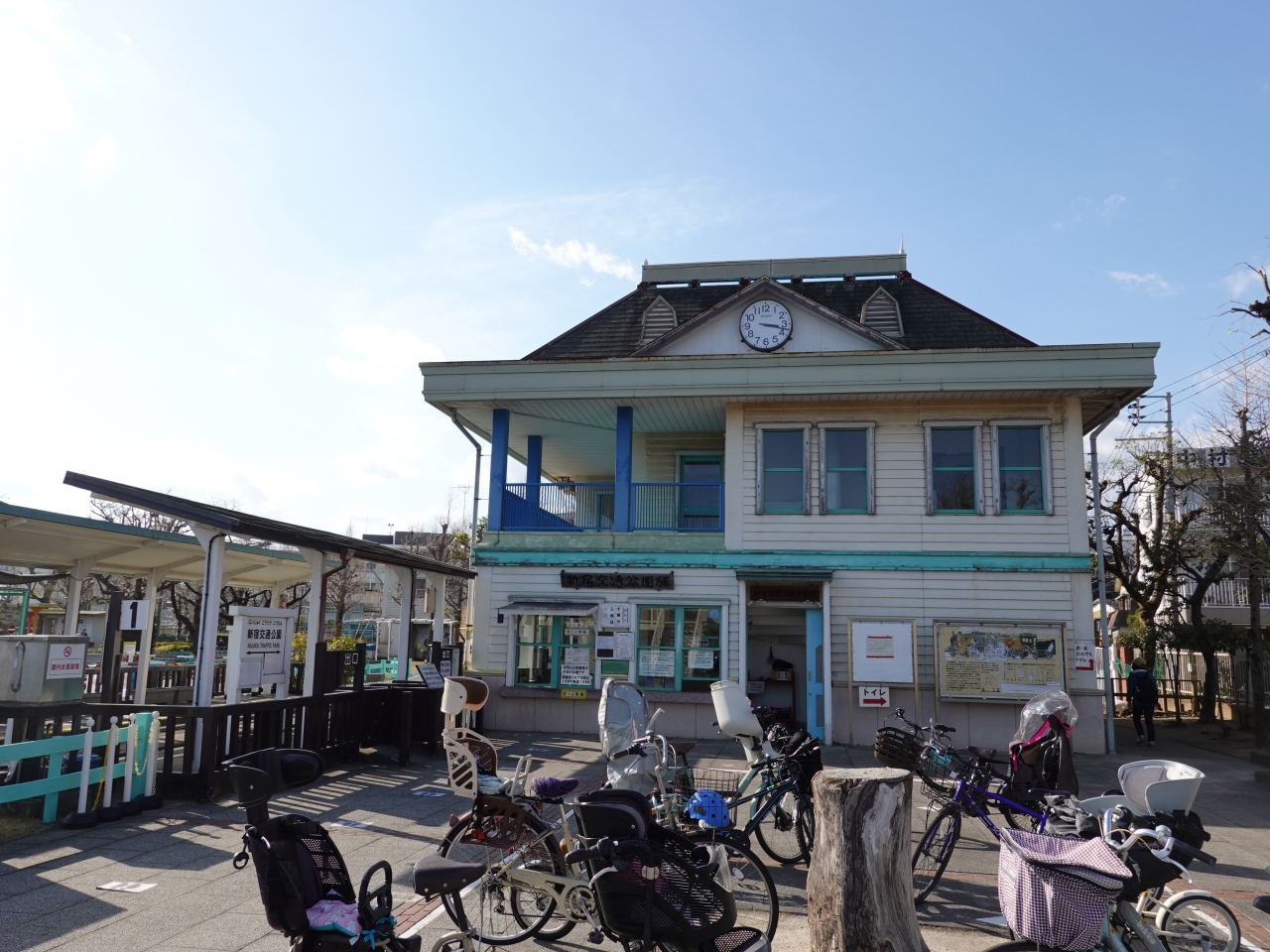 水戸街道を松戸方面に進み、金町一丁目の交差点で右折して200メートルほどの場所にある公園です。園内にはバスや消防車の姿があり、ミニSLも走るなど、子どもたちに人気の公園です。また瀟洒な木造西洋建築の姿があるなど、大人もそそられる公園だと思いました。残念なのは鉄道駅から遠く、専用駐車場がないことです。