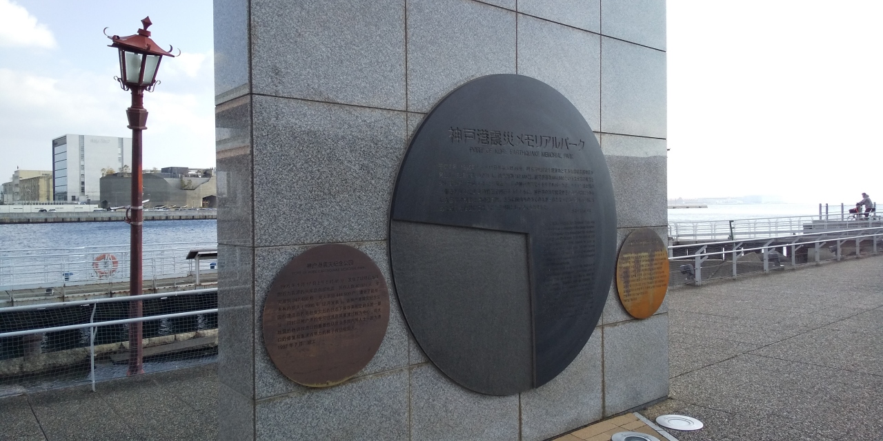 神戸のメリケンパークには阪神大震災の傷跡をそのまま保存している