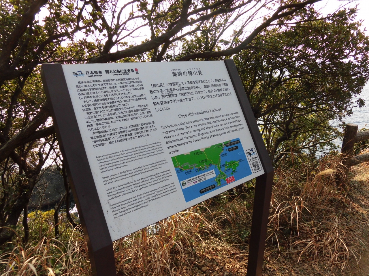 潮岬に行った時に、潮岬灯台の先に、くじら山見という絶景ポイントがありました。昔はこの辺りで捕鯨が盛んだったので、この場所からくじらを見つけて、漁に出かけたのだろうと思いました。確かに見晴らしも良くて、ひょっとしたら今でもくじらを見つけられそうでしたが、そうは簡単に見つけることはできませんでした。