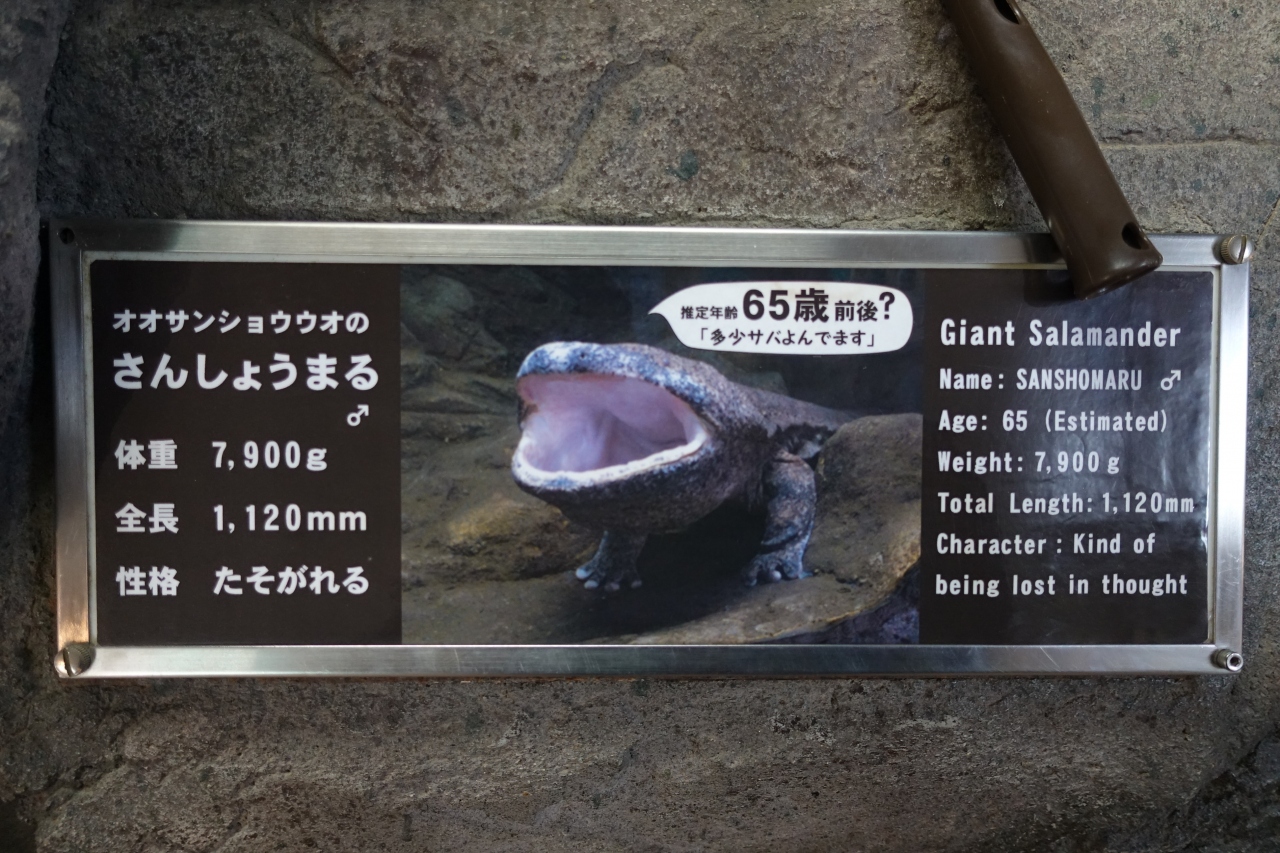 決して大きな施設ではありませんが、サンショウウオがいっぱい居ます。名前が付けられていて親近感を感じます。自分より年上のサンショウウオも居ました。