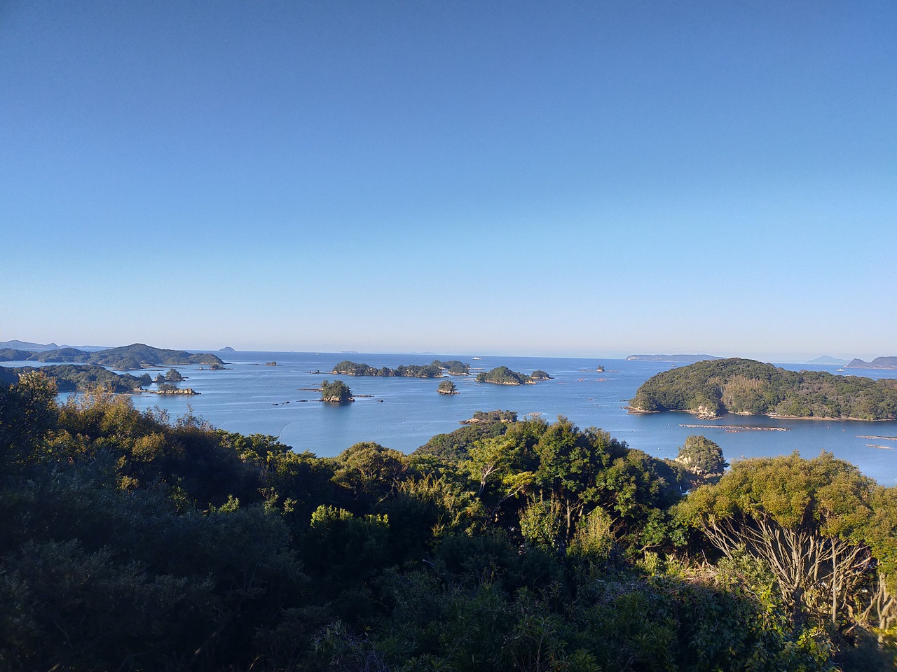 朝9時頃に訪ねた時は先客が1名いましたが、入れ違いで出ていきました。九十九島の景色を独り占め。のどかな漁港も目に入り、穏やかな海を眺めていると心が落ち着きました。