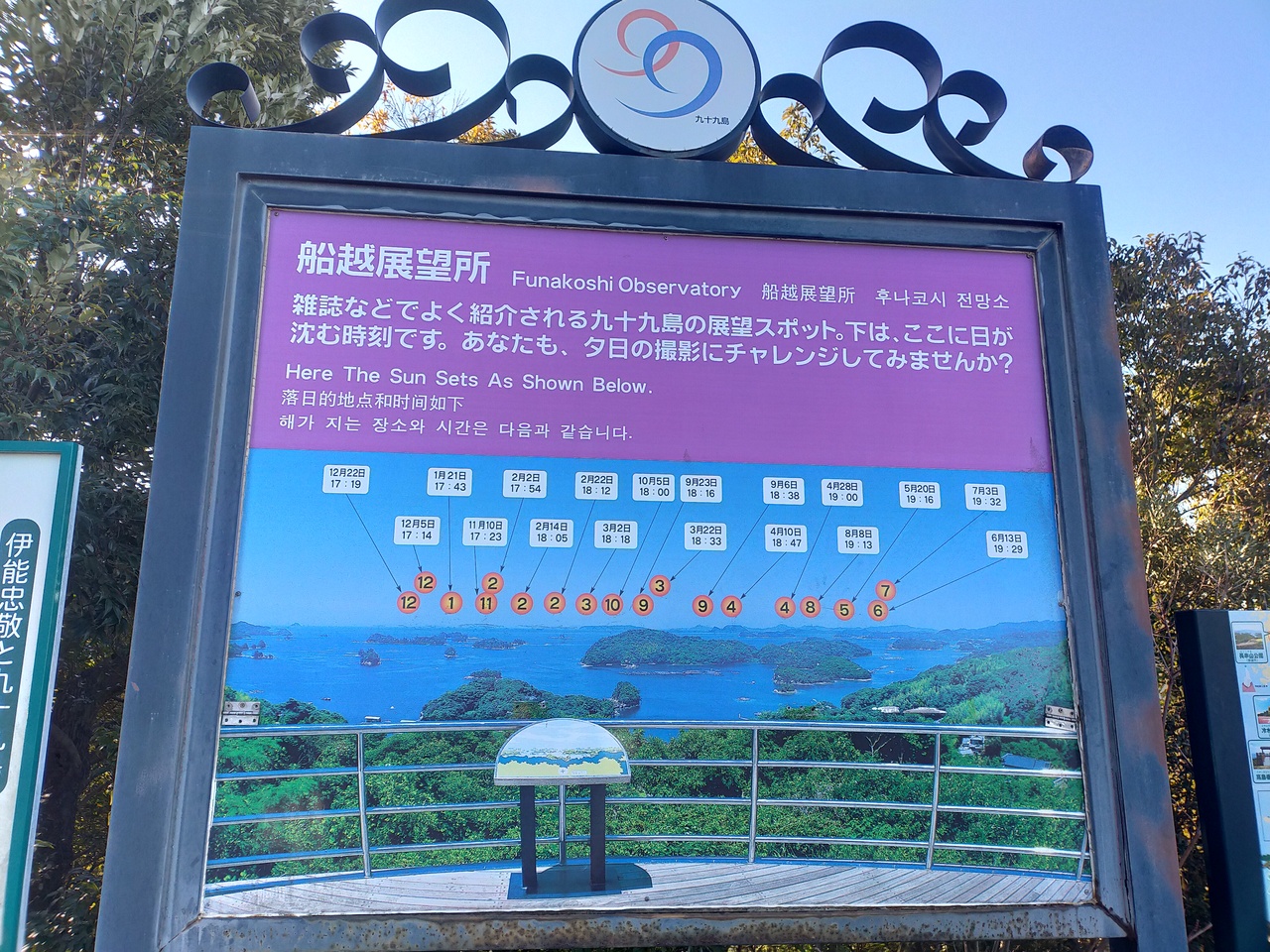 船越展望所は展海峰ほど名前が知られている訳ではなく、ひっそりとした展望所です。佐世保市街から展海峰へ行く途中にあり、駐車スペースも10台ぐらい、と言った所でしょうか。市街地から向いて車を進めると、入りやすいです。逆に展海峰側から降りてくるとUターンして入れることになり、駐車場も反対車線側です。
