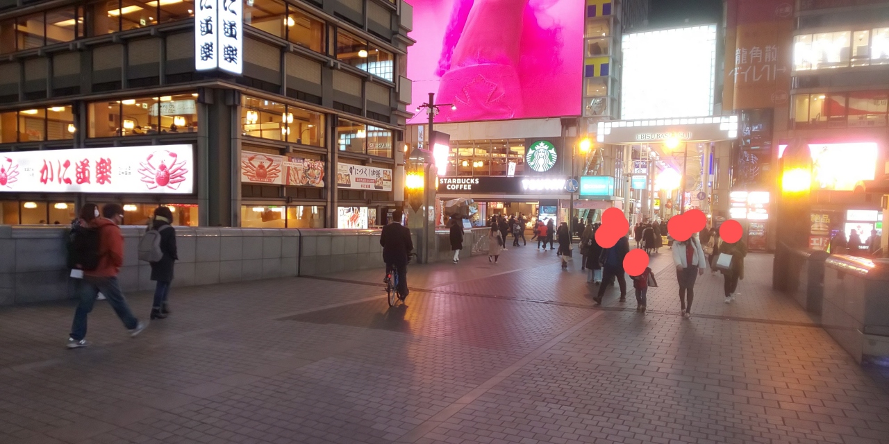 道頓堀のグリコを見れるあの橋です。予想通り、多くの人がこの橋でたむろっており、賑わっていました。遊ぶ際の集合場所として使う人もいるでしょう。