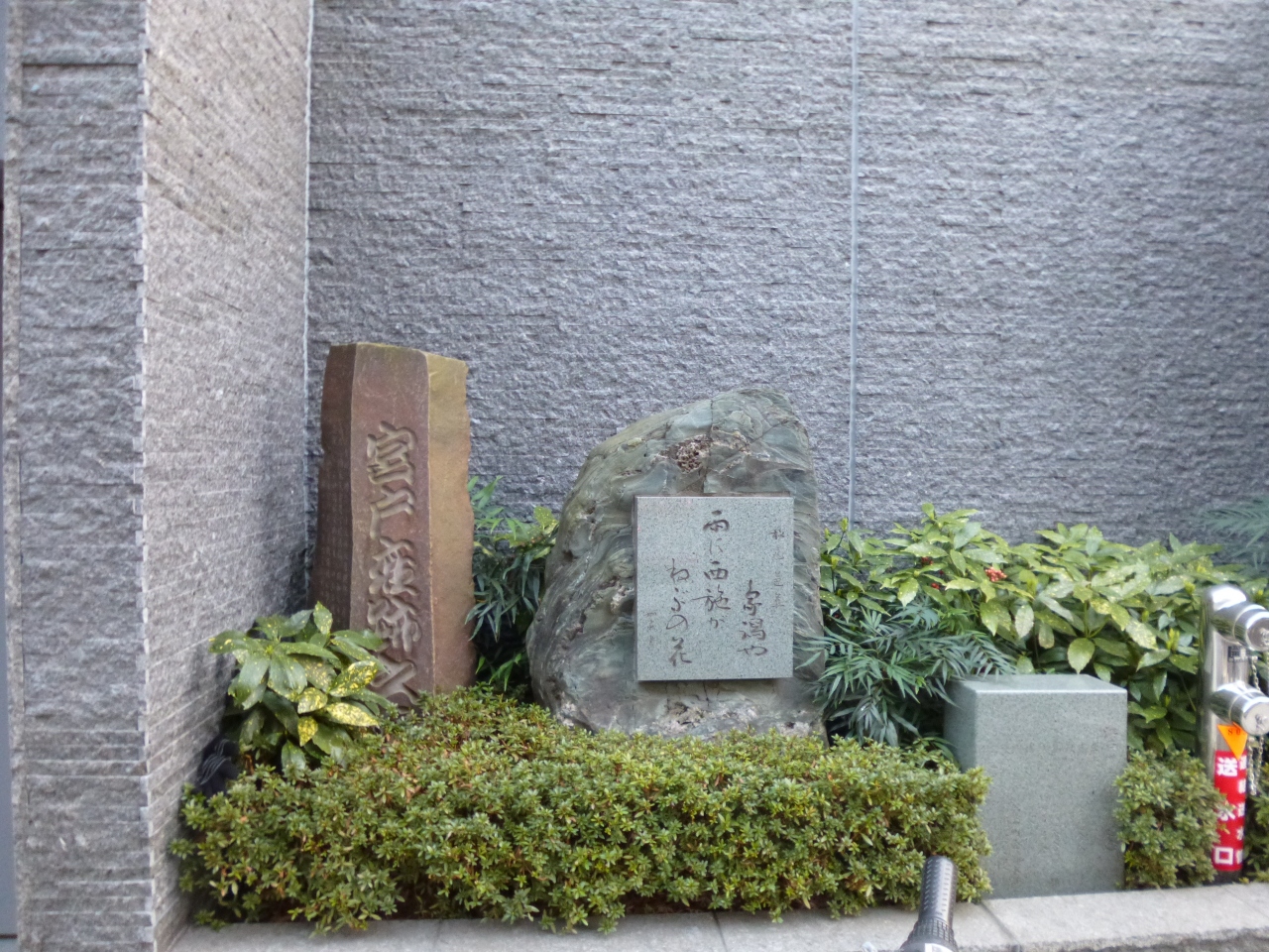浅草寺から北へ3分ほど行ったところ、マンションの外壁の途中、コーナーになったところに碑が建てられています。植栽もされていて、きれいに整備されています。明治29年に開場した芝居小屋で、名前は隅田川の古称「宮戸川」にちなんだといわれています。関東大震災で焼失した後も再建され、昭和12年目で続いたそうです。現在は、近辺にもその雰囲気を感じることはできません。