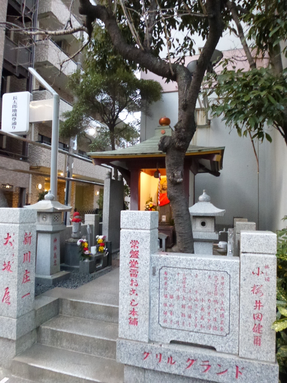 浅草寺の北側、言問通りにある雷5656会館の南西の角にこの地蔵尊があります。江戸時代末期、浅草寺と信者、浅草の町のために生涯を捧げお寺からも町の人からも信望を集めた道引長太郎氏を祀った地蔵尊だそうです。7月24日には毎年浅草寺の僧侶によって回向が行われるそうで、浅草の人々から大切にされているのがわかります。